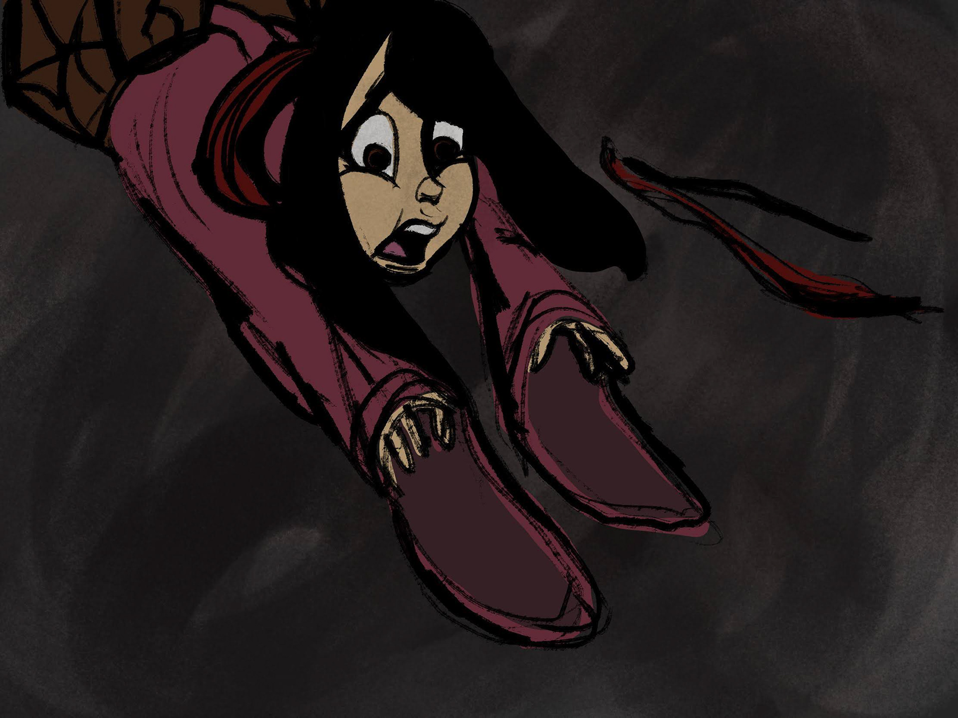 Suddenly, darkness swallowed the path, and the tiny spirit stopped and turned to face her.
